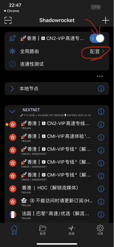 • Shadowrocket有时会出现问题,请重启手机。